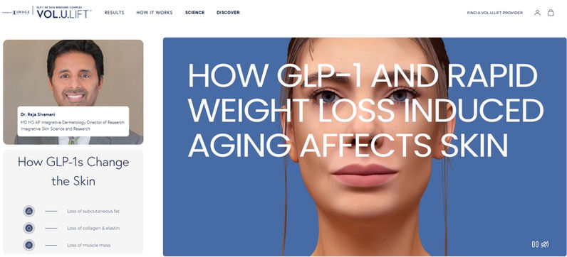 Design Cells created a comprehensive visual campaign for Image Skincare's VOLULIFT, combining medical illustration with sophisticated 3D animation. The project included custom cellular process animations demonstrating how VOLULIFT's formula combats aging effects from rapid weight loss and GLP-1 treatments, as well as striking 3D product renderings featuring the signature blue tube against dynamic gradient backgrounds with modern geometric elements.