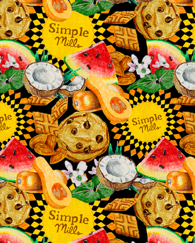 Adrianne Paerels created a series of custom, hand-drawn illustrations for Simple Mills that bring a textured, tactile energy to the brand’s natural ingredients. Using a signature cross-hatch style, Adrianne captures the raw detail of everything from crunchy almonds and sliced coconut to honey-toned crackers and fresh watermelon. These pieces were designed to live as playful stickers and brand merchandise, turning wholesome pantry staples into collectible works of art. By focusing on rich, hand-rendered colors and organic shapes, the project creates a bold visual narrative that feels high-end yet completely approachable.